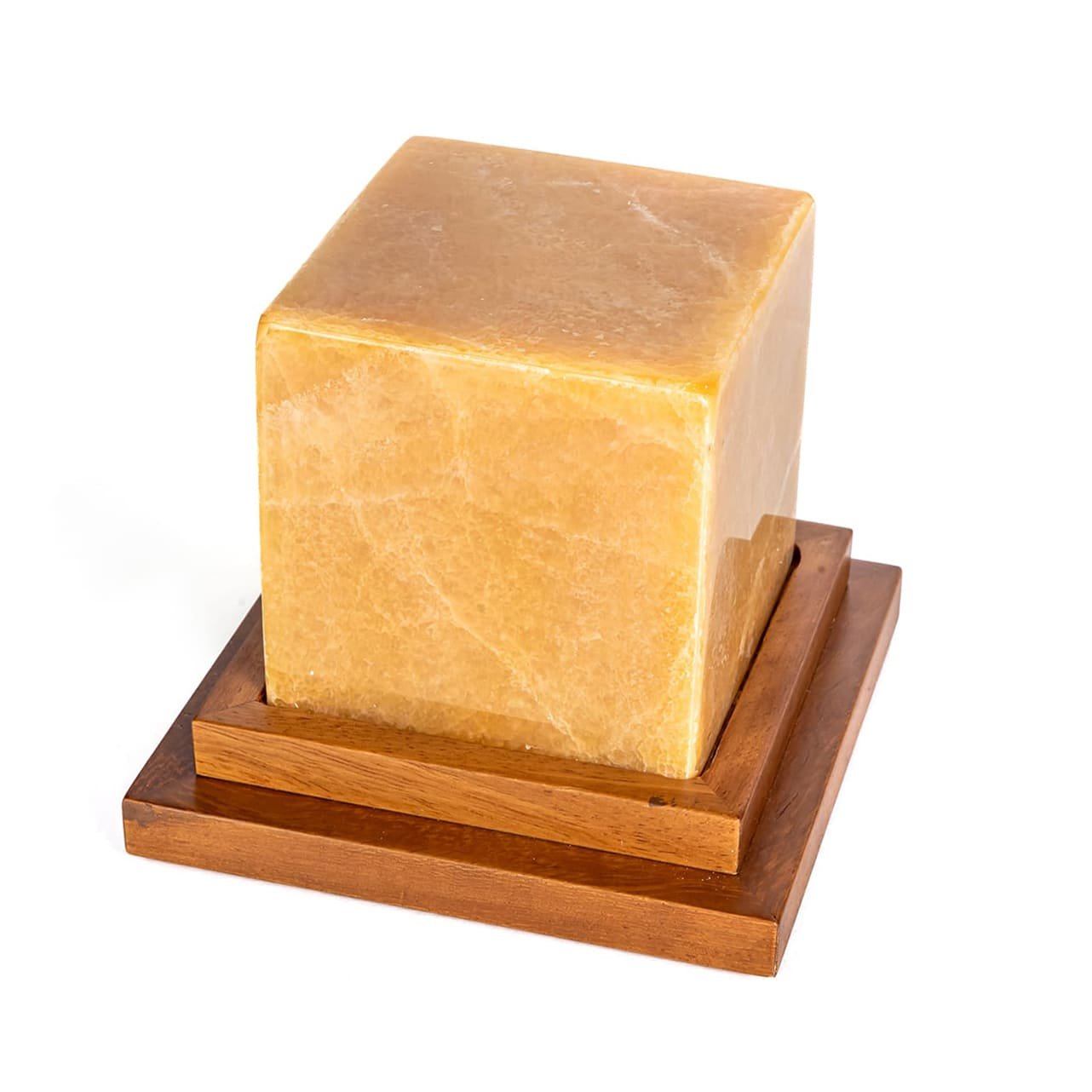 Carved from Evia Onyx, the Desert Amber Cube reveals a rich honey-gold luminosity that echoes the warm radiance of desert light.