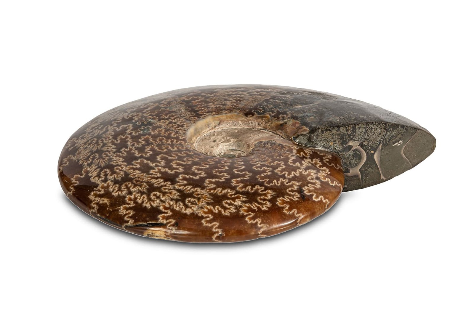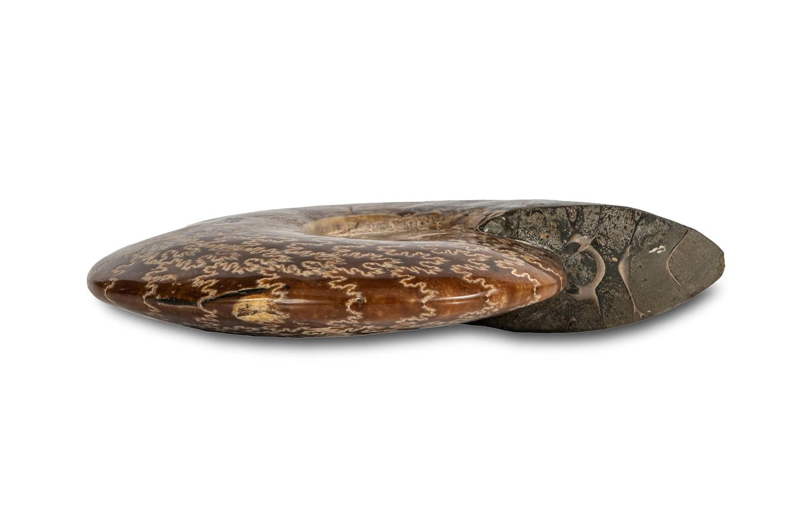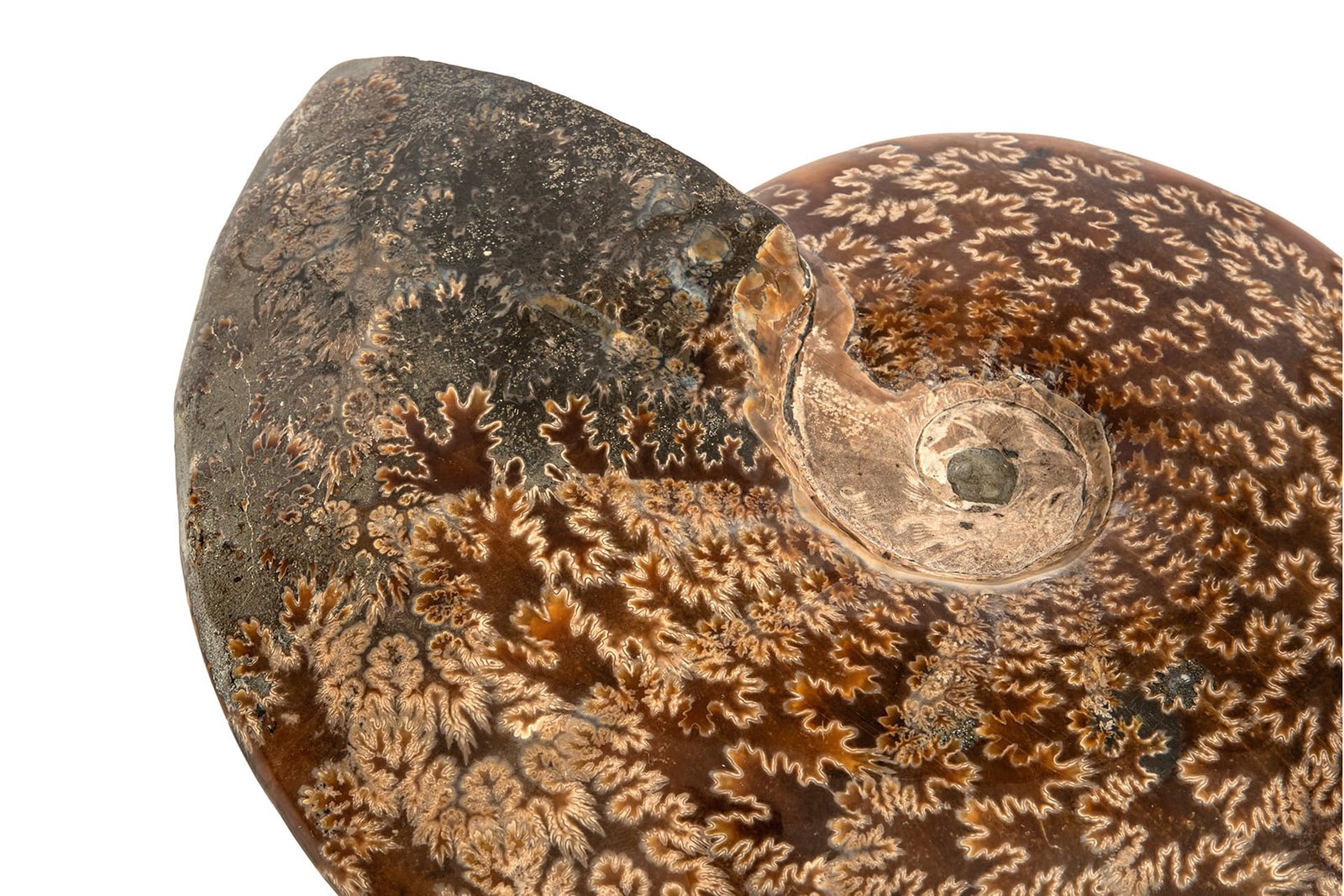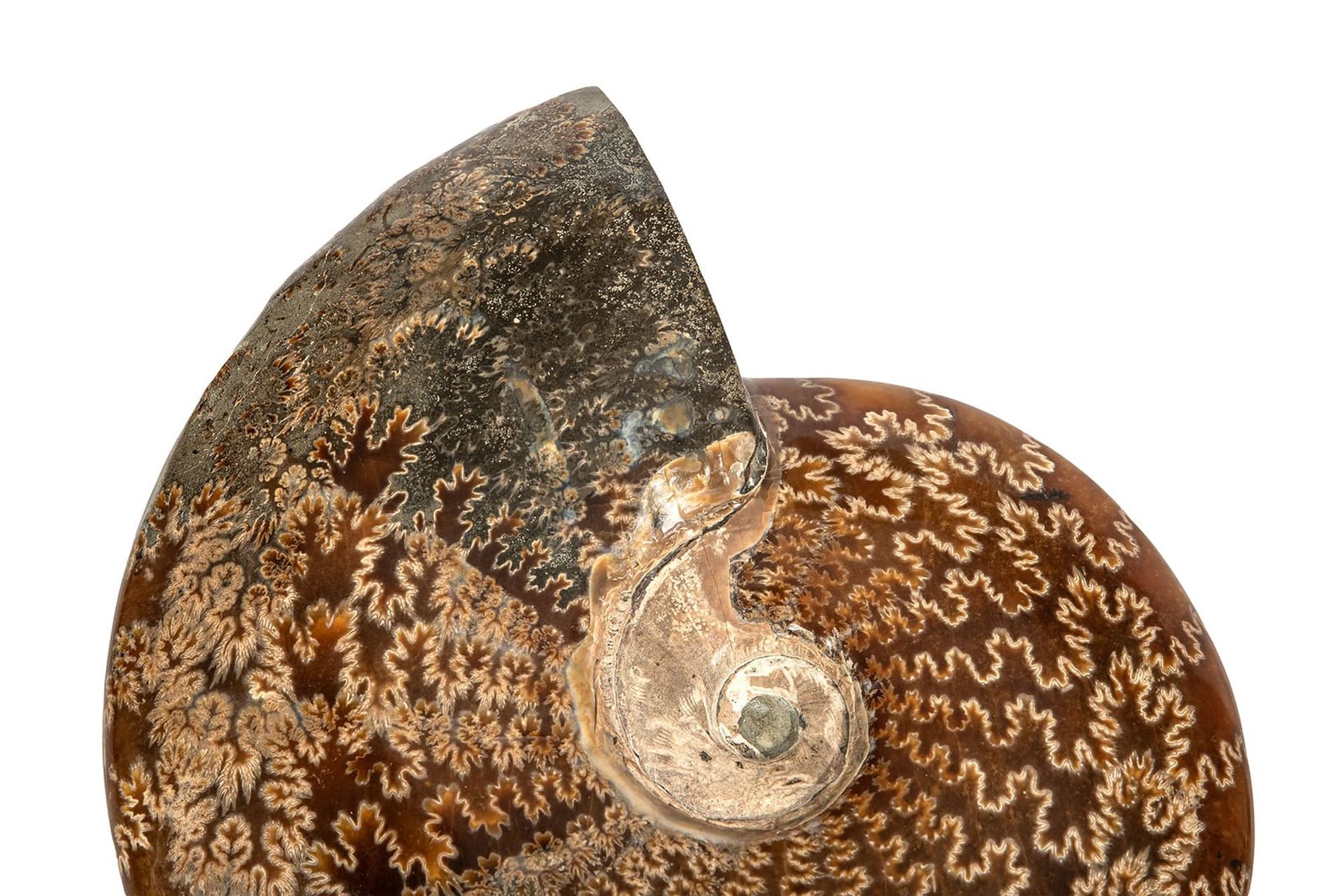 Madagascar ammonites are known for highly defined septal sutures, exceptional preservation, and rich mineral replacement that produces their characteristic caramel, gold and espresso tonal transitions. Each piece is a one-of-a-kind geological record—formed over 100 million years ago and stabilized through natural aragonite and calcite crystallization.