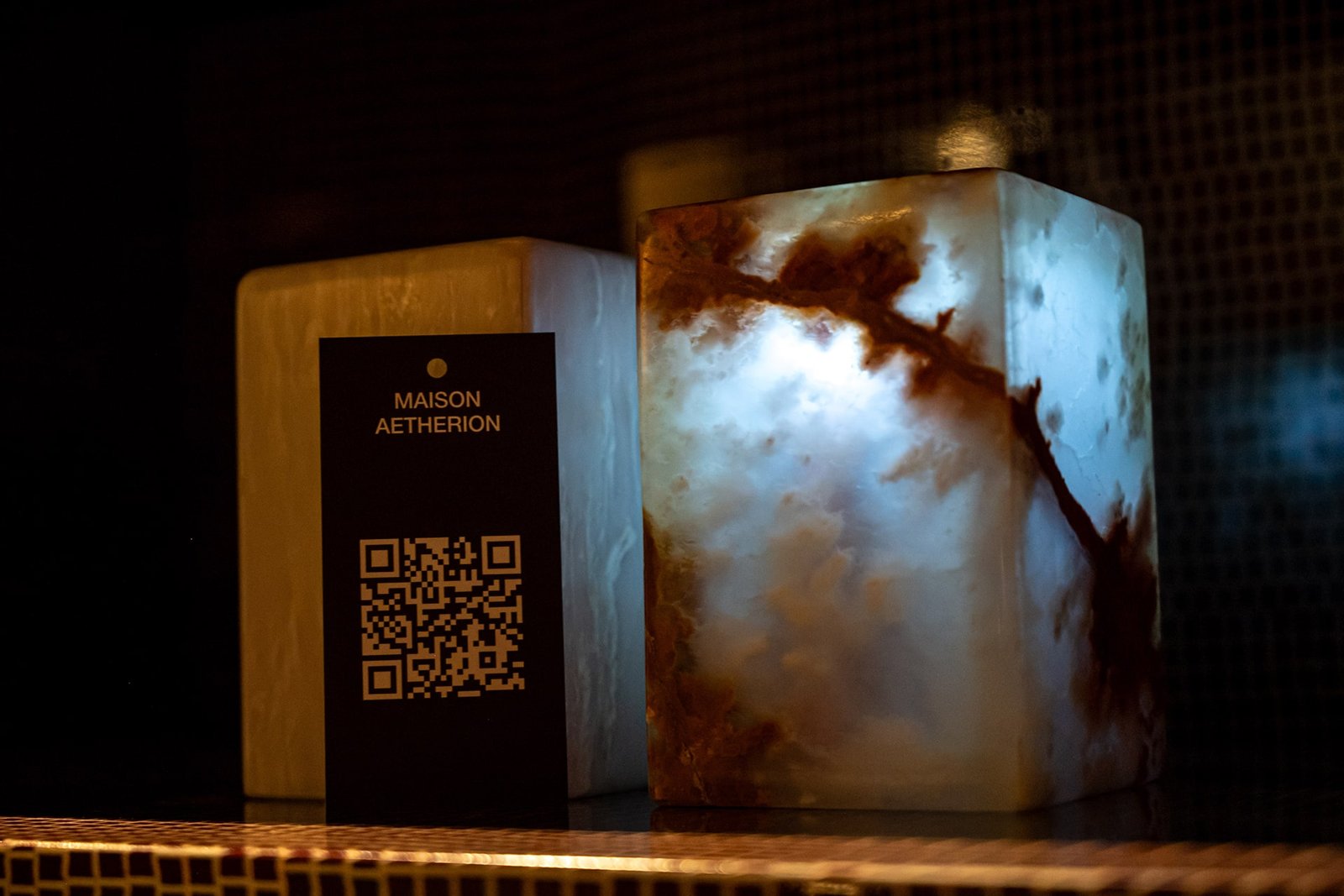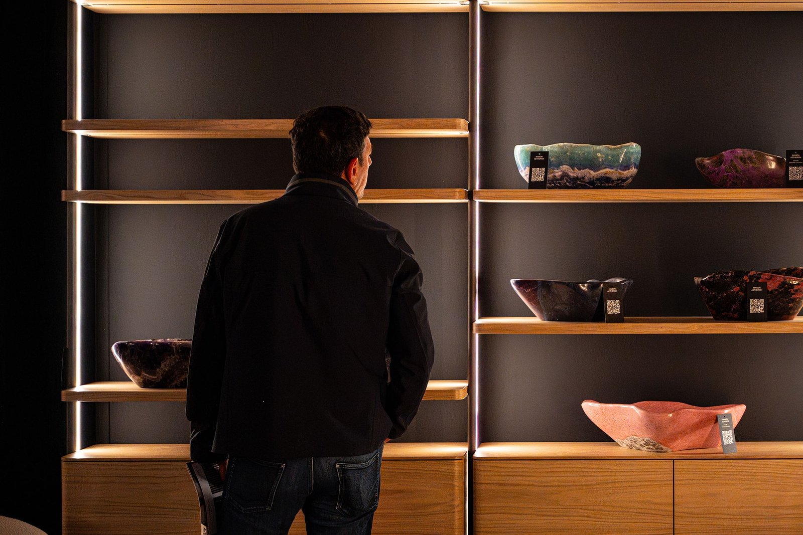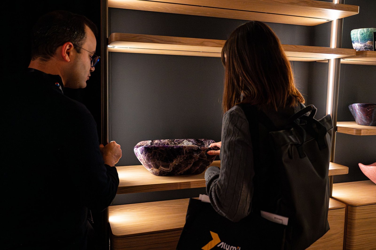 The Architect Show showcased Maison Aetherion’s approach to material-driven design: illuminated stone structures, sculptural light columns, vessels, and collectible objects crafted from onyx, marble, and semi-precious minerals.