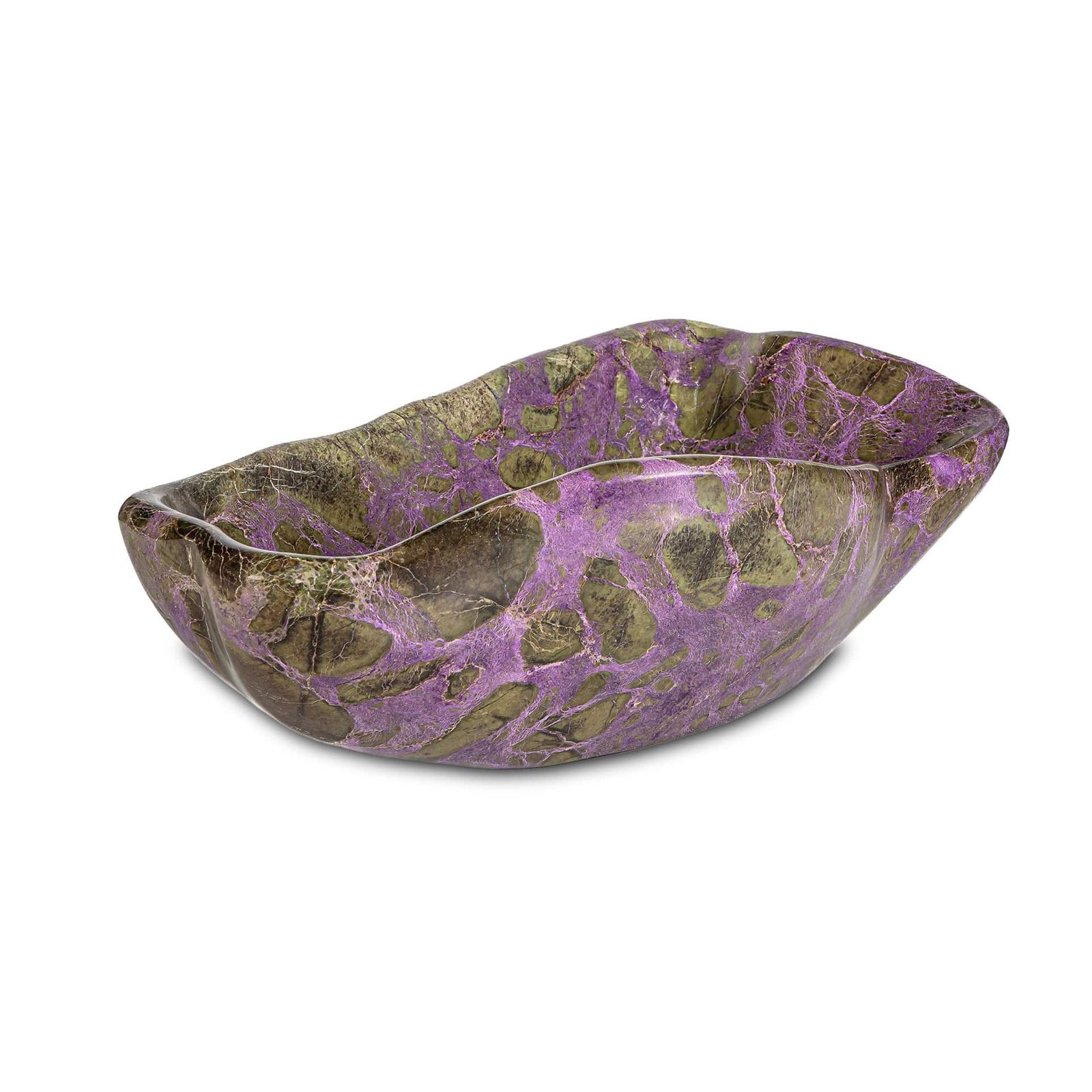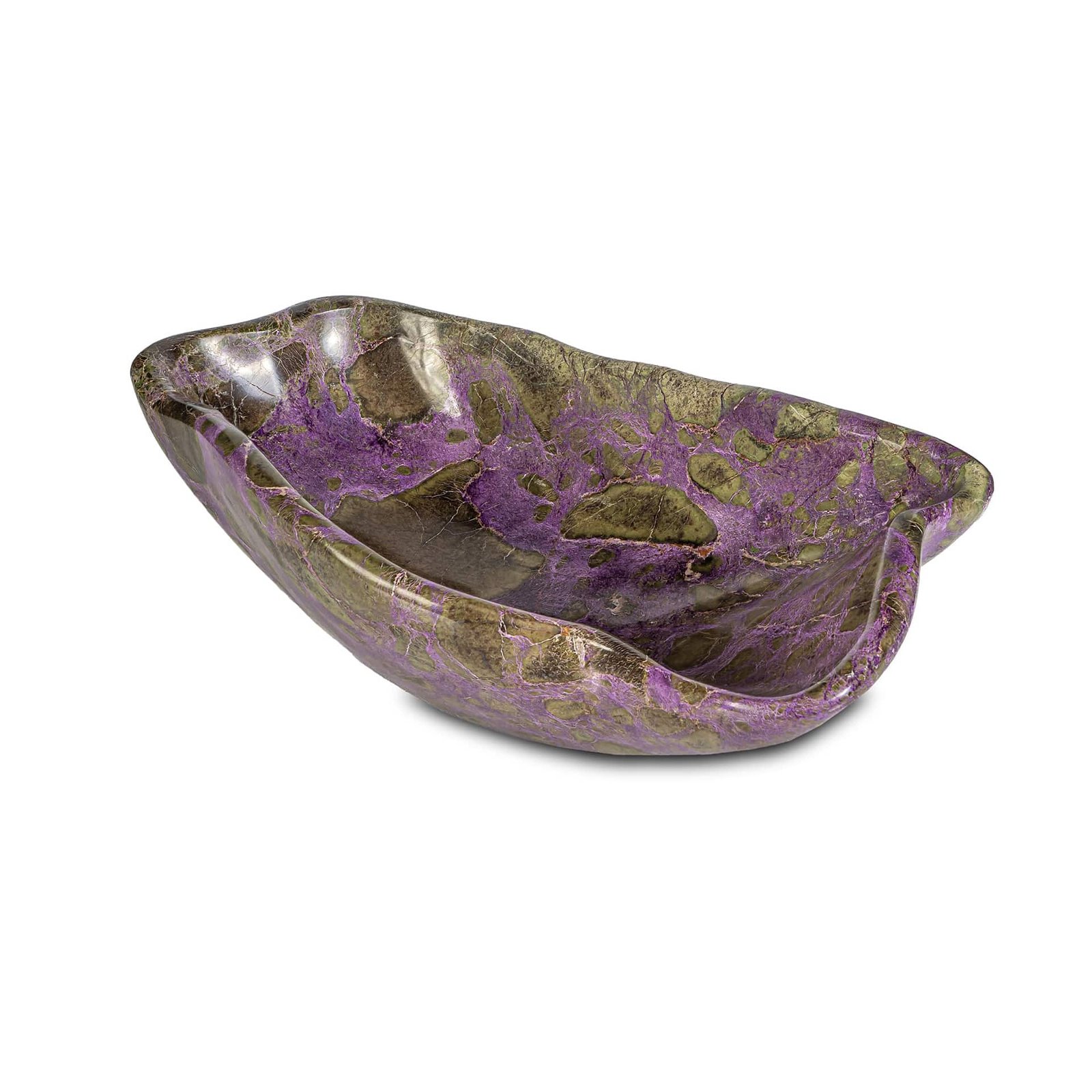 Carved from rare Australian Stichtite, Desert Orchid Vessel evokes the opulence and mystique of Arabian desert kingdoms.