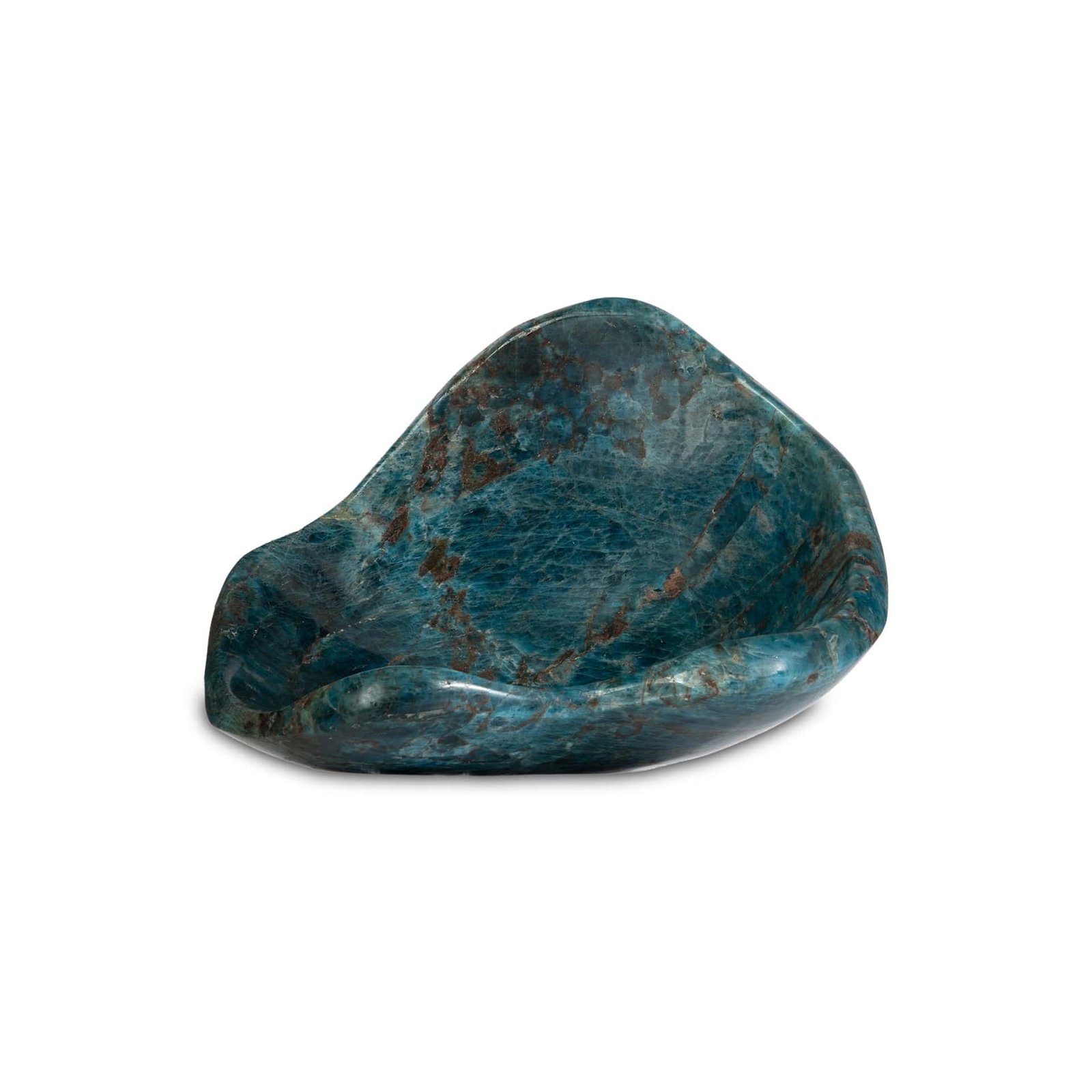 Hand-carved from Blue Apatite, Oasis Tide Vessel reflects the rare beauty of desert waters — deep, vibrant, and unexpected.